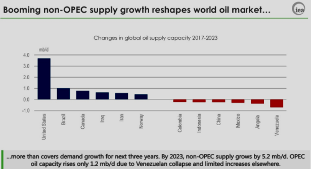 The latest report from the IEA.org forecasts an oil market dominated by the United States. See the report at Oil 2018 | iea.org as well as a Bloomberg.com video Mar 5, 2018.